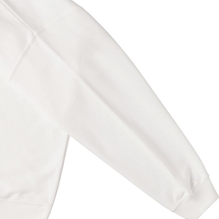 裾まわりのシルエットが浮かばないように絞り込んだ裾口や、ほどよい溜まり感のある袖、首まわりはタフなダブルスティッチなどこだわりを詰め込んだシルエット。